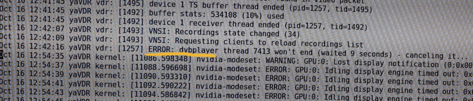 Trotz massiv getauschter Hardware zeigt yaVDR 0.6.2 genau wie mit der vorherigen Hardware-Konstellation plötzliche Hänger.