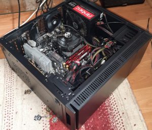 Grafikkarte, DVB-S2 Karte, CPU-Kühler, SSD und Netzteil um montiert.