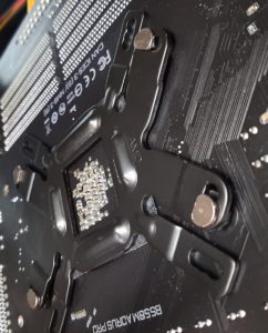 • Mainboard Gigabyte B550M AORUS Pro ein Traum weil das gesamte Backpanel ohne Blech schon in einem Block verbaut ist
