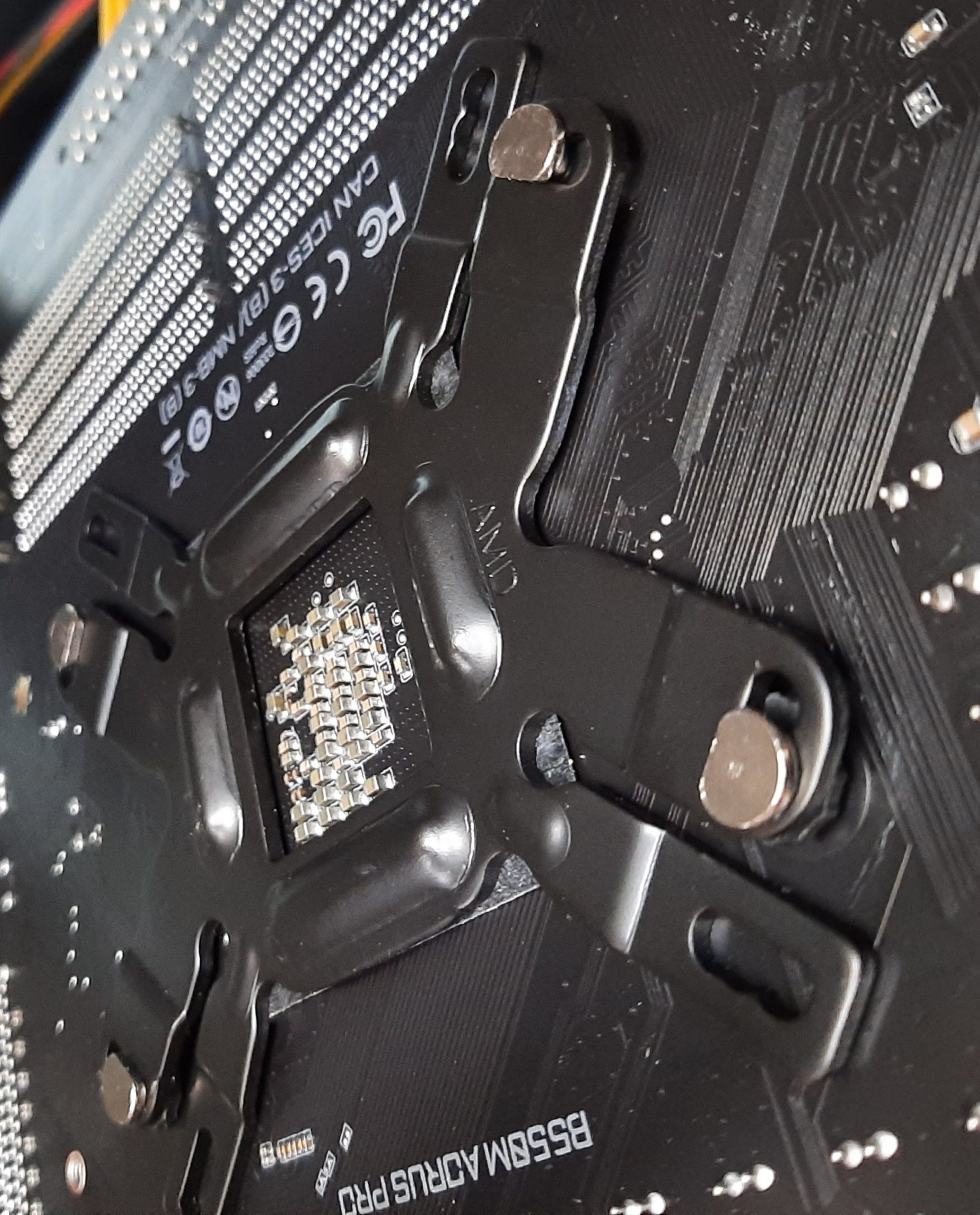 Backplate am Mainboard fixiert mit Abstandshaltern