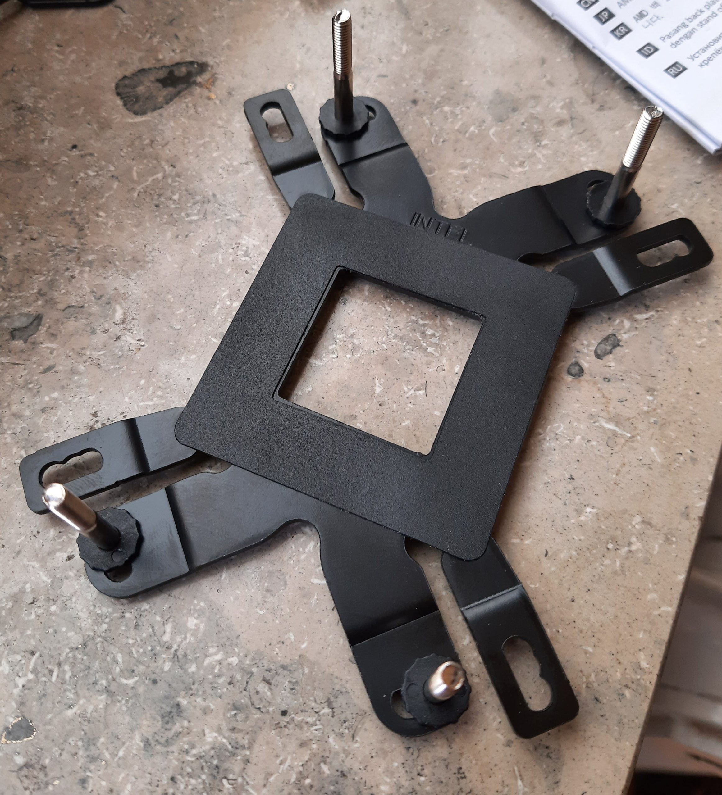 Das schöne an der Corsair H60 war, das man einfach nur zwei Steigbügel artige flexible Ösen hatte. Einfach in die original Mainboard Halterungen einhängen, festschrauben, fertig.