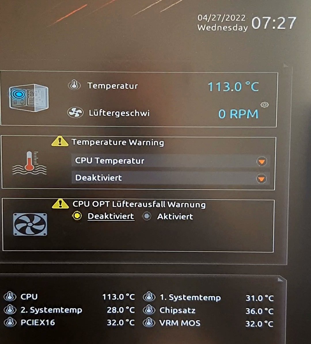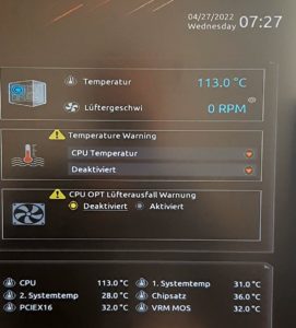 CPU Temperatur 113 Grad !!! Pumpendrehzahl = NULL !!!