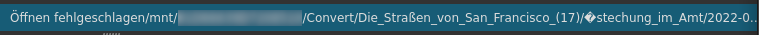 Seltsam, Drag & Drop einer Videodatei direkt nach ShotCut war von jeglichem Ordner unter MINT 20.3 (vor MINT 21) möglich. Nun kommt immer eine Fehlermeldung “Öffnen fehlgeschlagen /mnt/Laufwerks-ID/Ordner/%Ordner/filmname.ts”