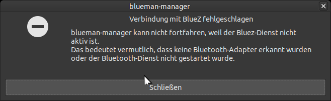 Bluez-Dienst nicht gestartet – kein BT Adapter erkannt