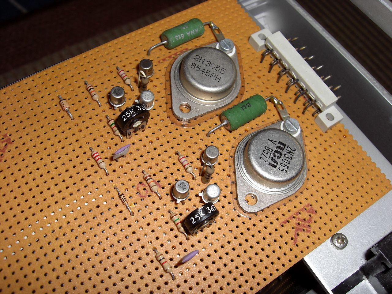 Auf dem Speicher fand ich noch einen von mir gebautes modulares 19-Zoll Computersystem. Das Netzteil hat eine nachgeschaltete doppelte elektronische Sicherung. Deren Ansprechstrom ist mit einem Potentiometer justierbar. Ist eine solche Sicherung einmal ‘durchgebrannt’ kann man sie nur durch Wegnahme der 220V Versorgung resetten. Der Einplatinencomputer selber ist bestückt mit einer 6502 CPU (4MHz), einer seriellen Schnittstelle SIO 6551und MAX 232 Pegelwandler, einer PIO 8255 und zwei gestapelten SRAM Chips mit getrennt herausgeführten Chipselect Signalen. Ferner ist noch ein ZN429 8-Bit D/A Wandler auf dem Board.