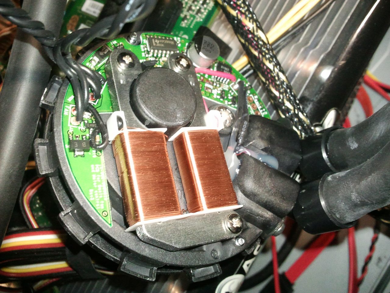 Alles drehen der Pumpe in Vertikaler-Position (Tower-Gehäuse) half nichts. Hält man die Pumpe jedoch waagerecht, absolute Stille, perfekt. Leider habe ich seit 15 Jahren kein Desktop-Gehäuse mehr. Dann habe ich mich getraut zwei Schrauben des Deckels der Pumpe heraus zu schrauben und den Deckel abzunehmen man sieht die Elektronik.