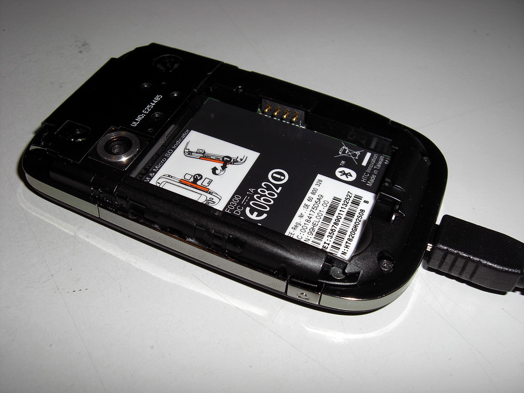 Da ist es, mein Smartphote MDA Touch (HTC Touch). Eben mal den Akku einbauen. Die Rückseite lässt sich nicht