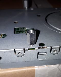 Also das der Auswurf-Knopf Schwierigkeiten machen würde war klar, aber beim Laufwerks-Einbau hätte ich’s echt nicht erwartet. Und genau als ich diesen Satz schreibe denke ich “warte mal, am Original-Laufwerk ist bestimmt ein Besfestigungs-Rahmen dran”. JAU !!! Also das Höherlegen der Floppy hätte ich mir sparen können :/