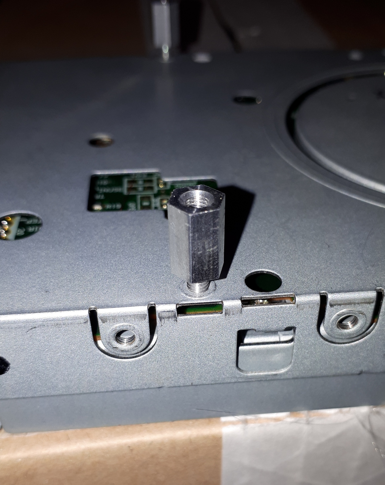 Zum Einen muß das Samsung Laufwerk deutlich höher eingebaut werden. Die zwei Metall Schraub-Verlängerungen schraube ich einfach weiter raus, hält trotzdem.