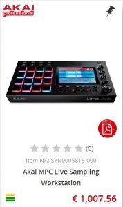 Dann gehe ich mal in den US MUSICSTORE und vergleiche den Preis z.B. der AKAI MPC Live mit dem Deutschen STORE ($ links/€ rechts).