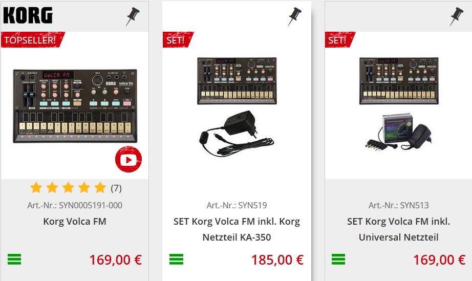 Also kostet die Volca FM ALLEINE genauso viel wie die FM mit Universalnetzteil. Sowas versteht nur der MUSICSTORE.