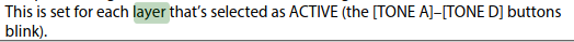 Nochmal “kurz” zum Thema ROLAND und Verwirrung stiften im Handbuch. Einmal reden die von Tones A bis D dann wieder von Layers. Für beides gibt es ja auch Tasten am Gerät.