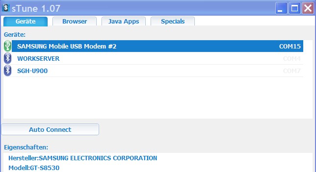 Danach sTune 1.07 starten und evtl. unter Geräte auf “Auto Connect” klicken. Nicht mehrmals weil ein Vorgang mehrere Sekunden dauert. Auch ich sah dort mein Wave II am Anfang nicht. Erst nach mehreren Fehlversuchen erschien es dort. Scheinbar braucht sTune die Installation der Treiber.